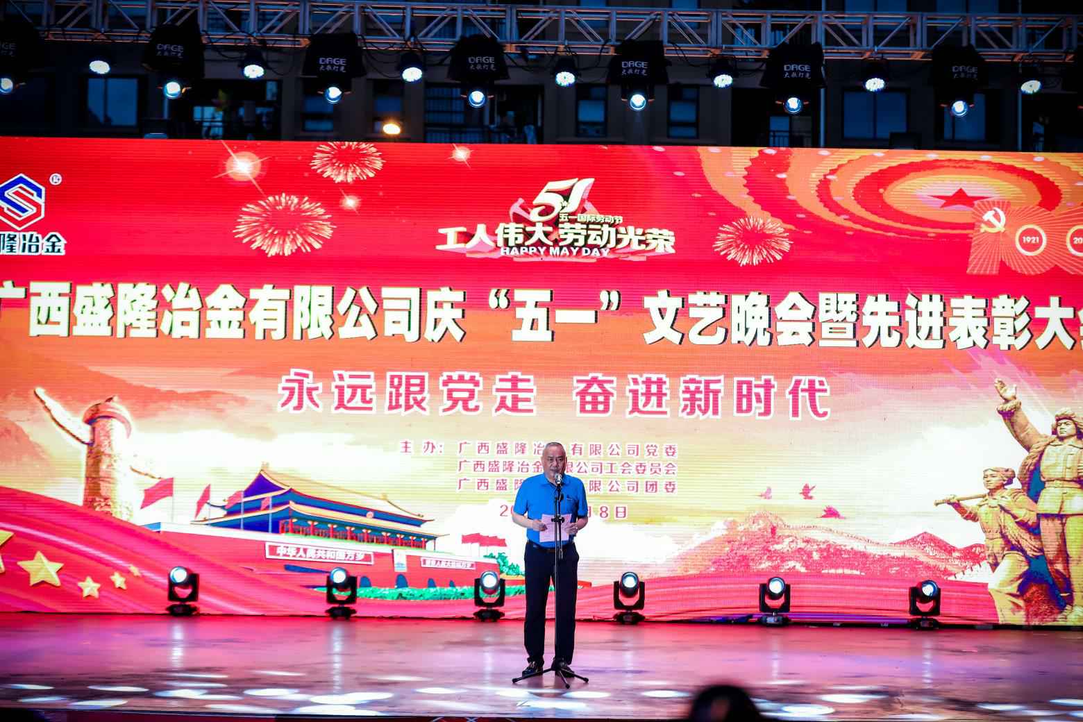 5月8日晚,开云手机在线登录官网入口-开云(中国)盛隆佳园文化广场歌声嘹亮,掌声如潮。由开云手机在线登录官网入口-开云(中国)党委、工会委员会、团委联合主办的“永远跟党走,奋进新时代——庆‘五一’文艺晚会暨先进表彰大会”在这里隆重举行。公司常务副总经理陈亮出席晚会并致辞,副总经理兼安环总监吕华民、副总经理兼技术中心主任刘光穆、总工程师兼规划发展部经理梁新亮、总经理助理兼广西广盛高强耐磨新材料有限公司总经理王文凯、党委常务副书记游元喜、工会主席兼总经理办公室主任刘明奇及各厂部主要领导出席。