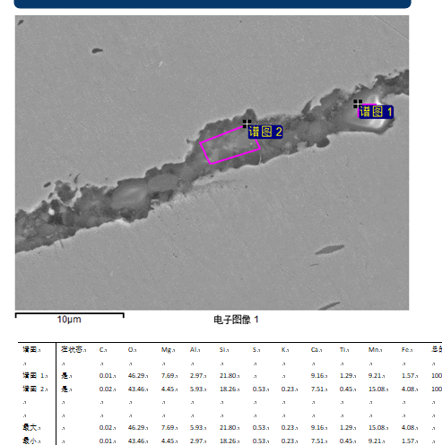 夹杂物进行能谱分析,发现两类典型夹杂: